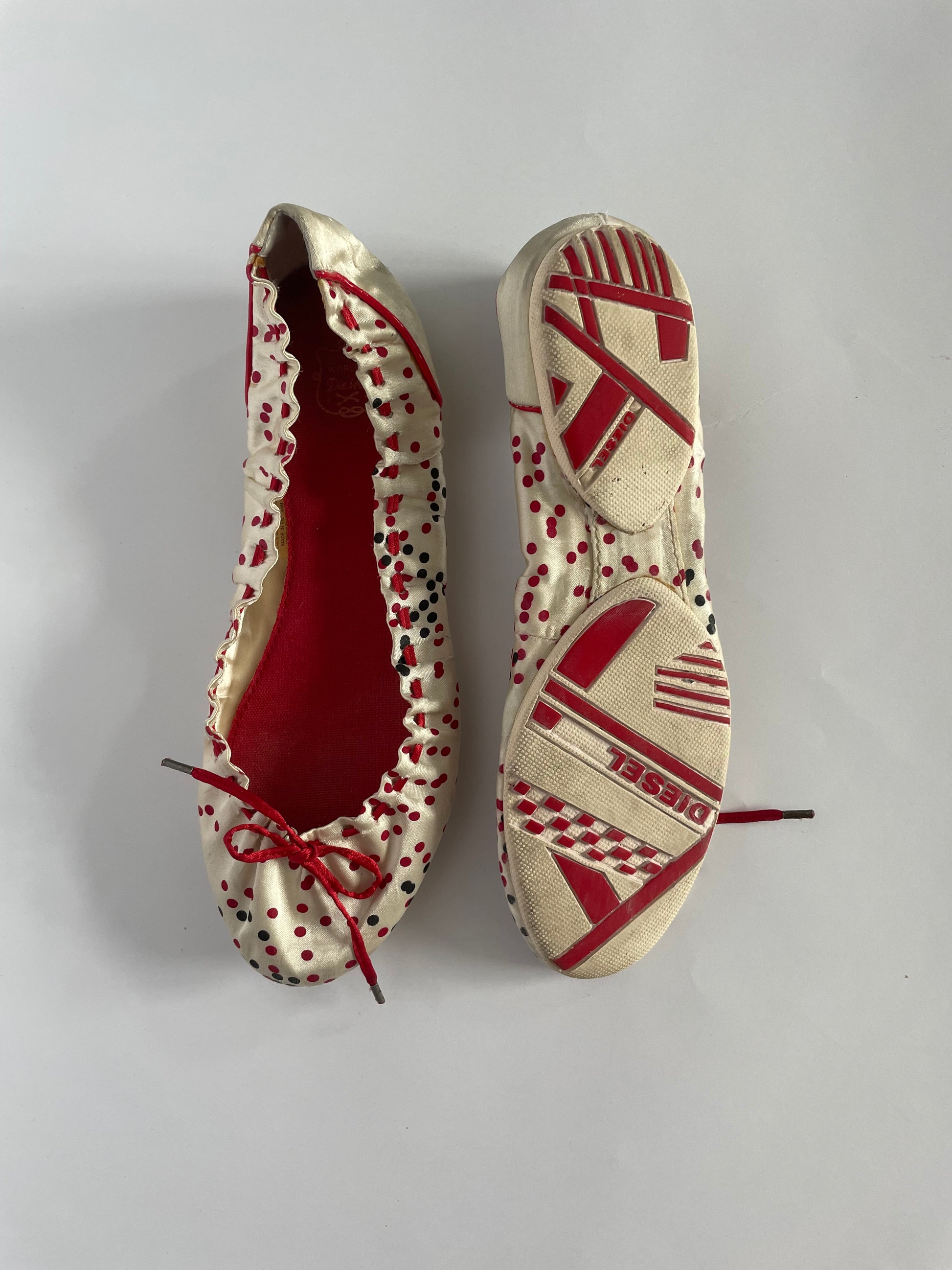 Vintage 2000’s diesel white and red polka dot ballet flats