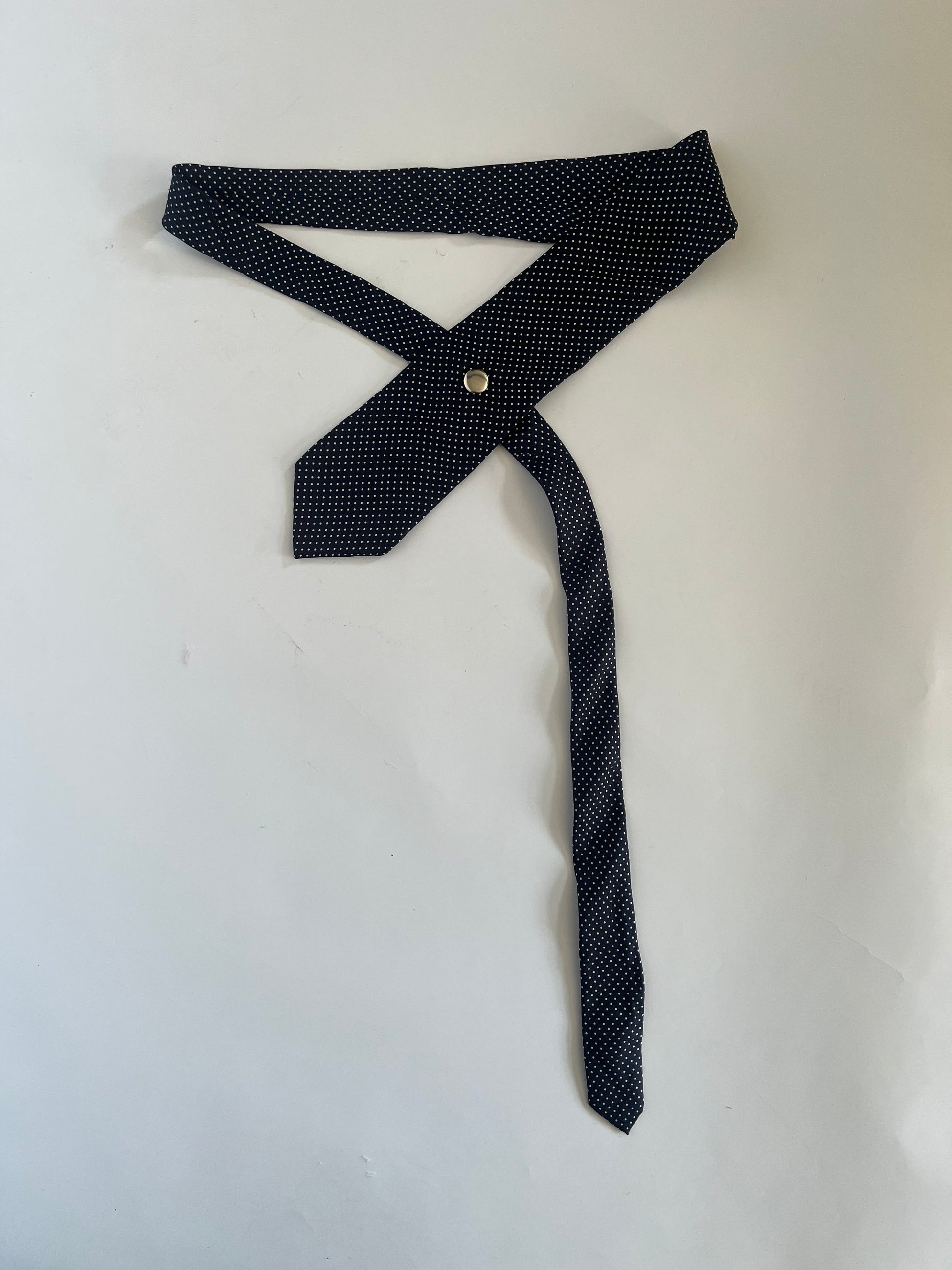 Navy polka dot tie belt. Hand made in London from reworked second hand ties, non adjustable.