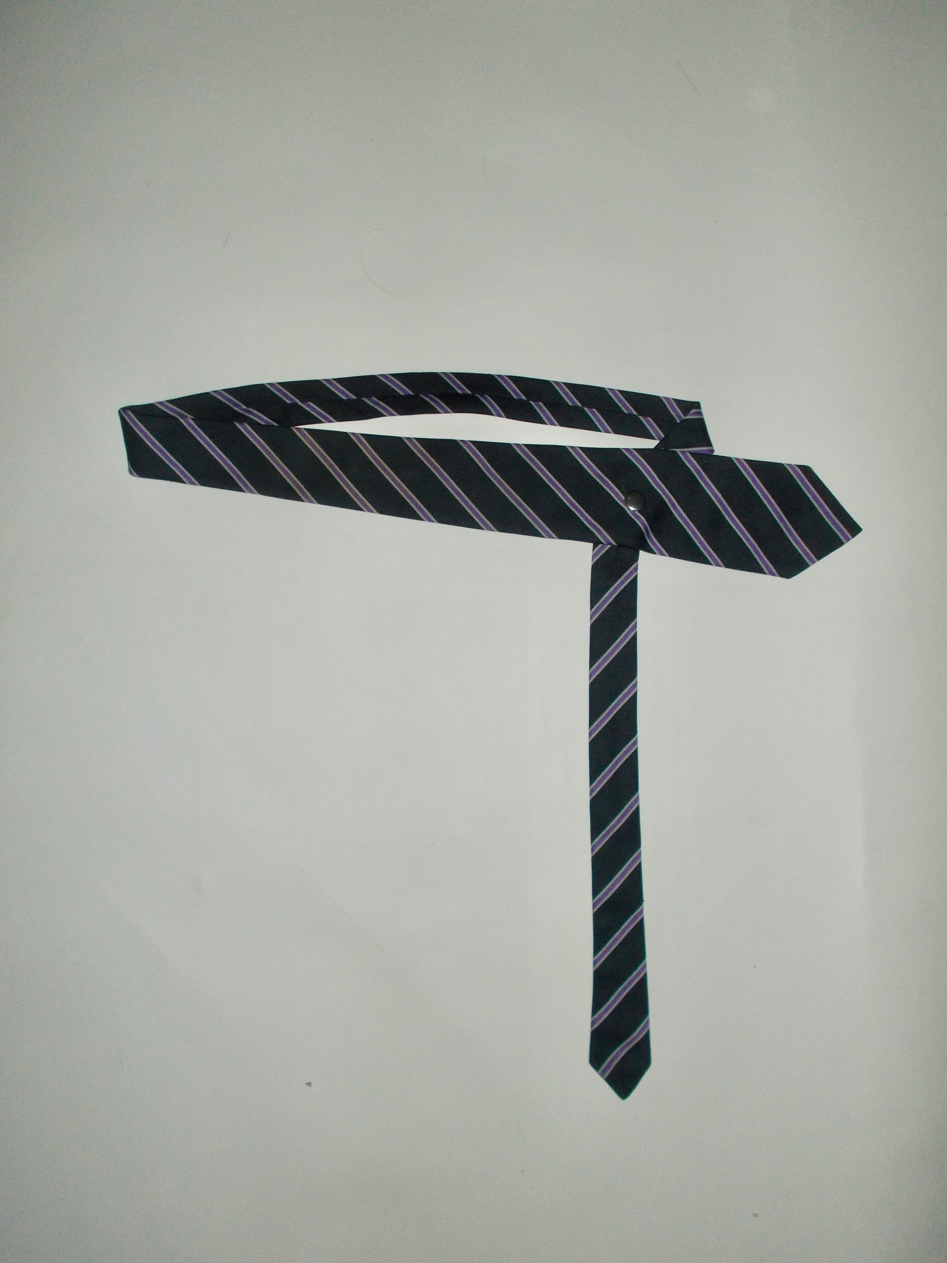 Navy, white and purple tie belt. Hand made in London from reworked second hand ties, non adjustable.