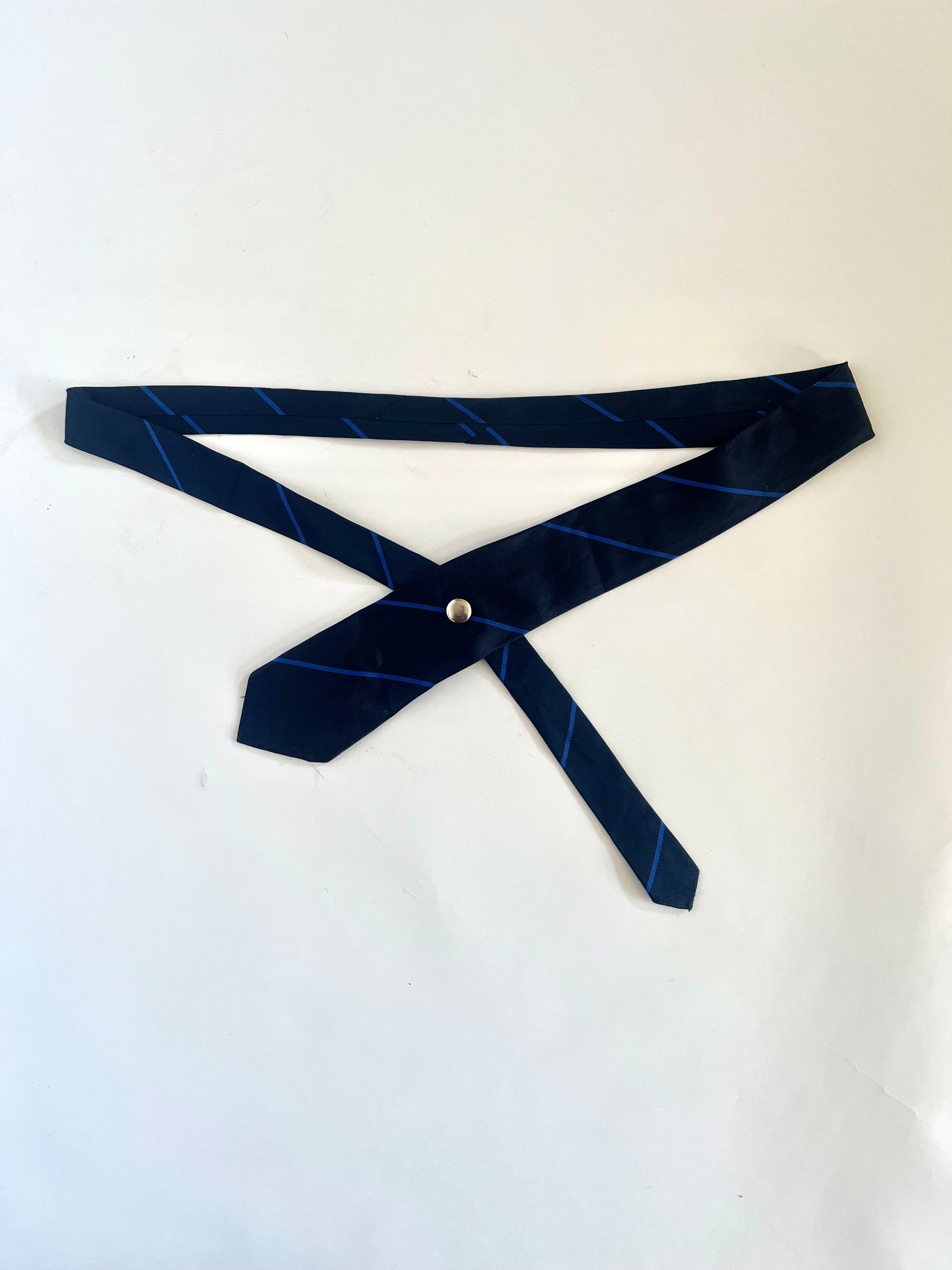 Navy and blue stripe tie belt. Hand made in London from reworked second hand ties, non adjustable.