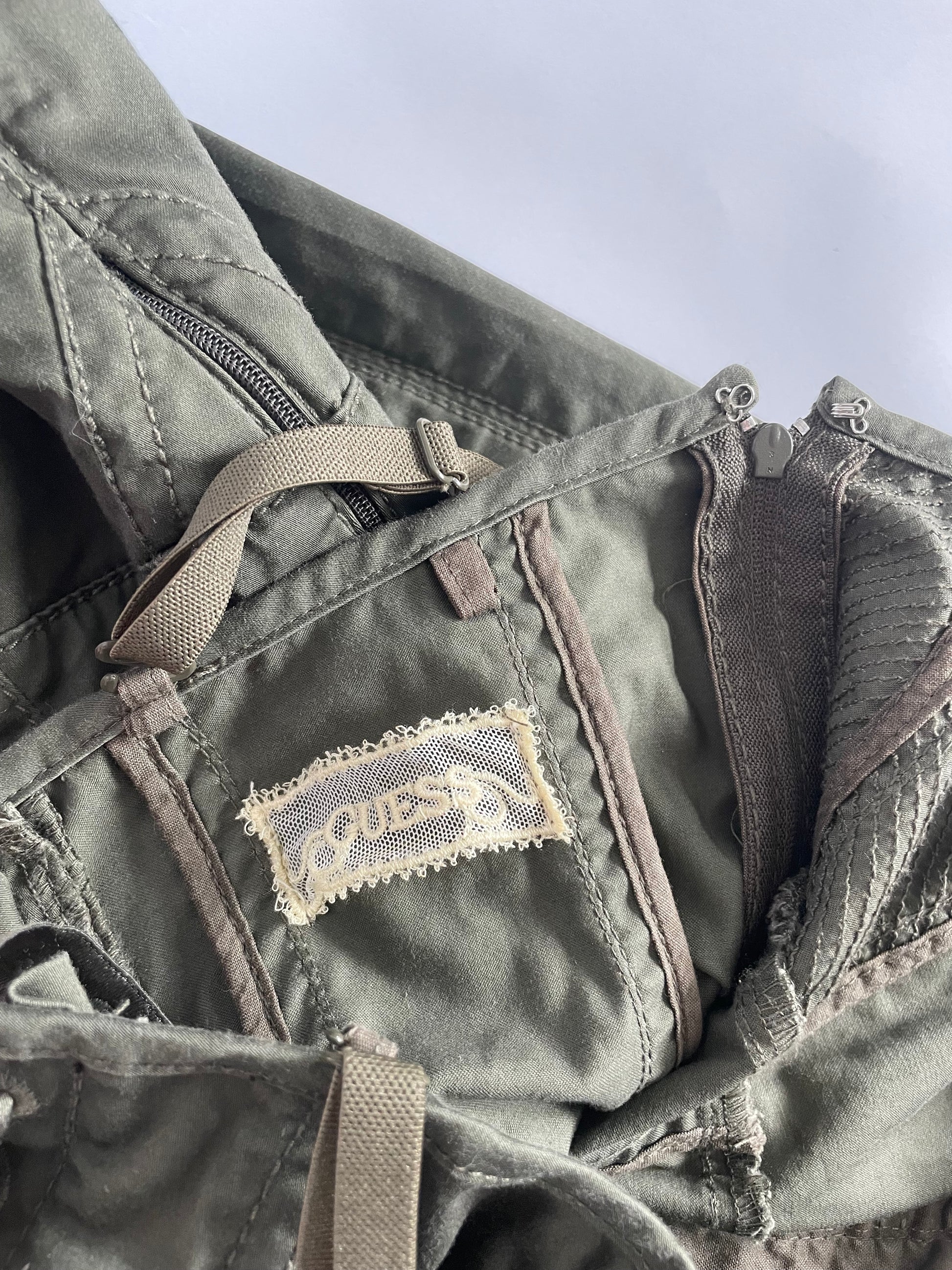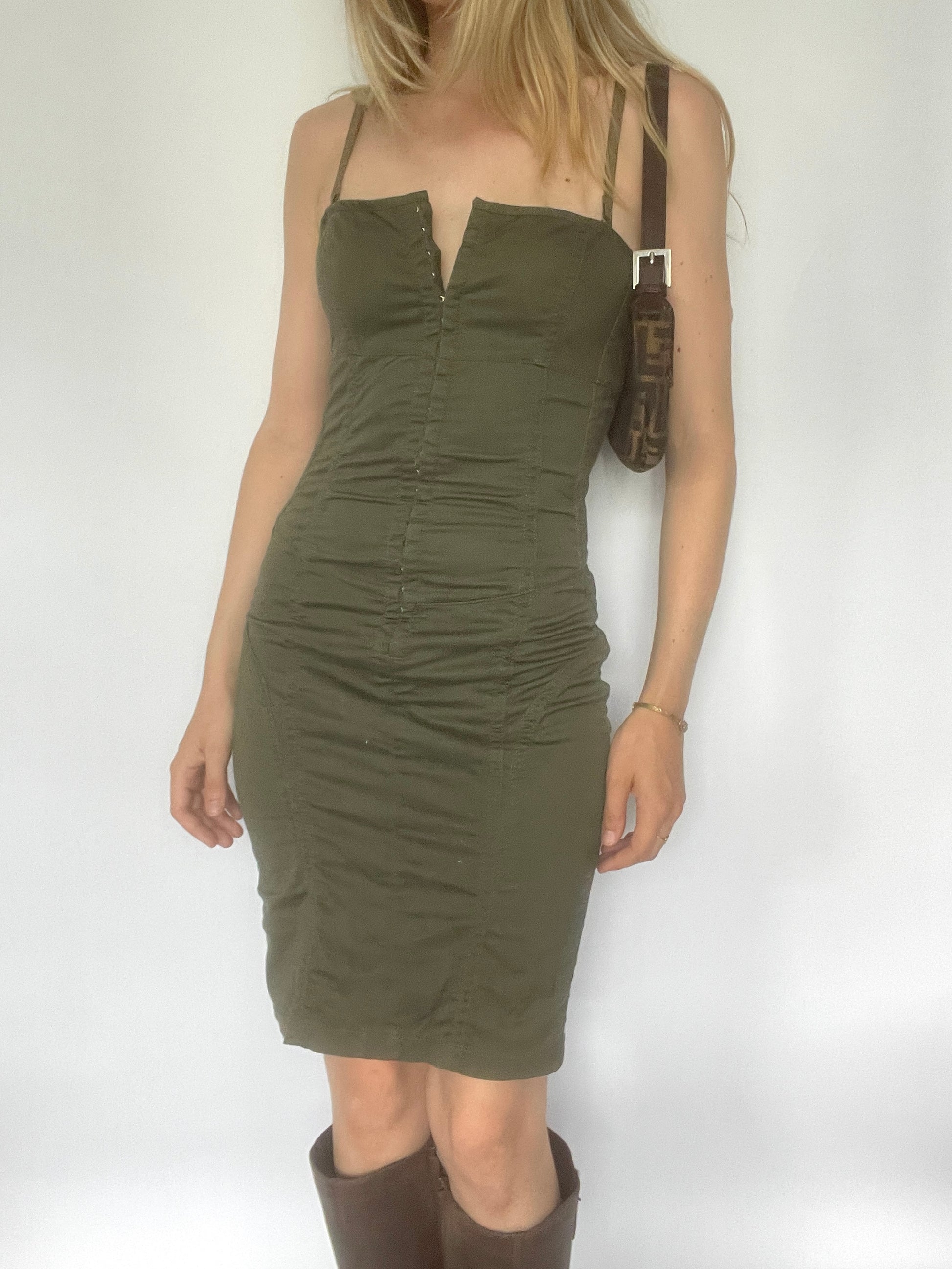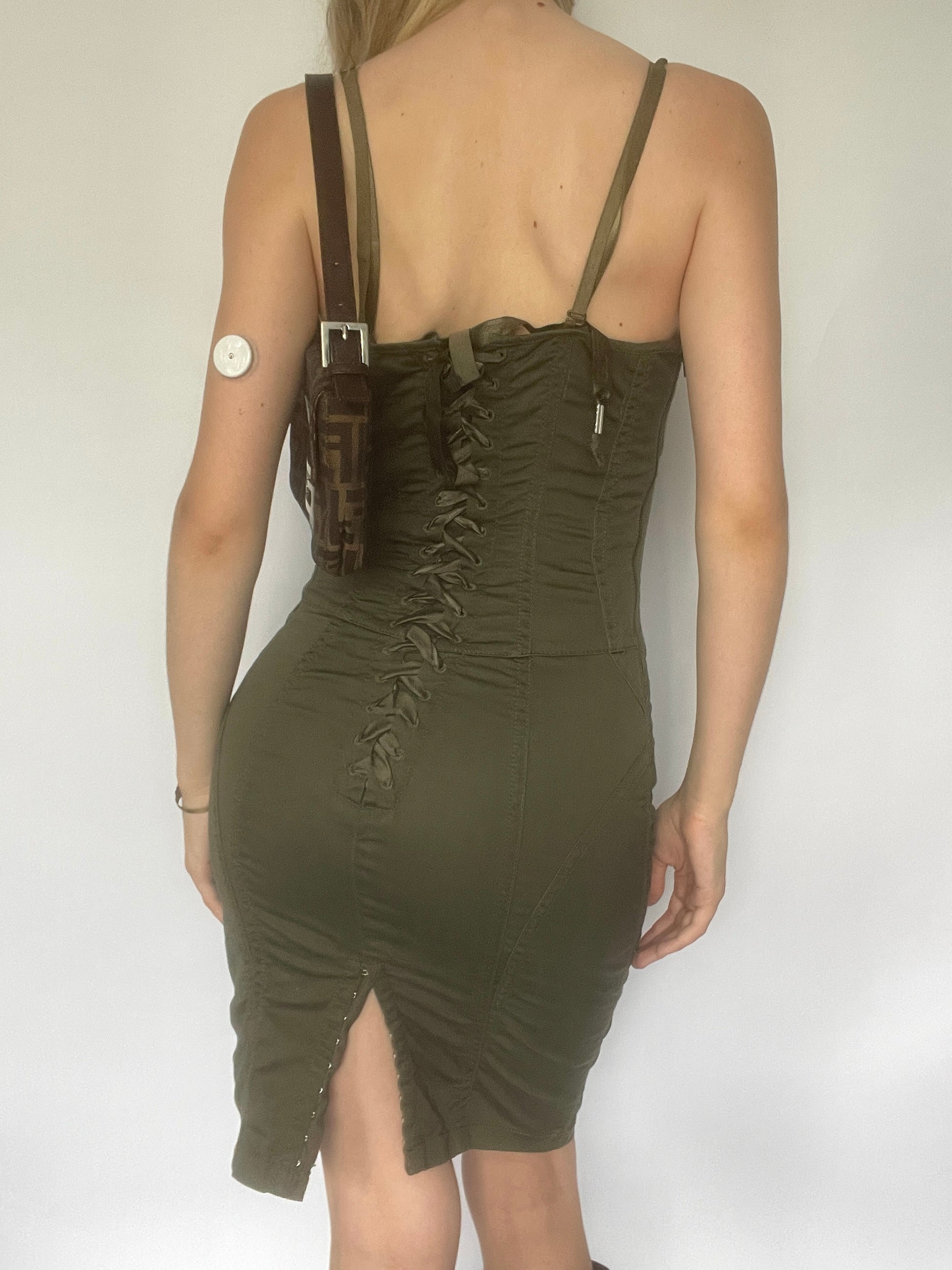 90’s guess khaki corset mini dress. Lace up back, hook and eye front and hook and eye on the bottom of the back