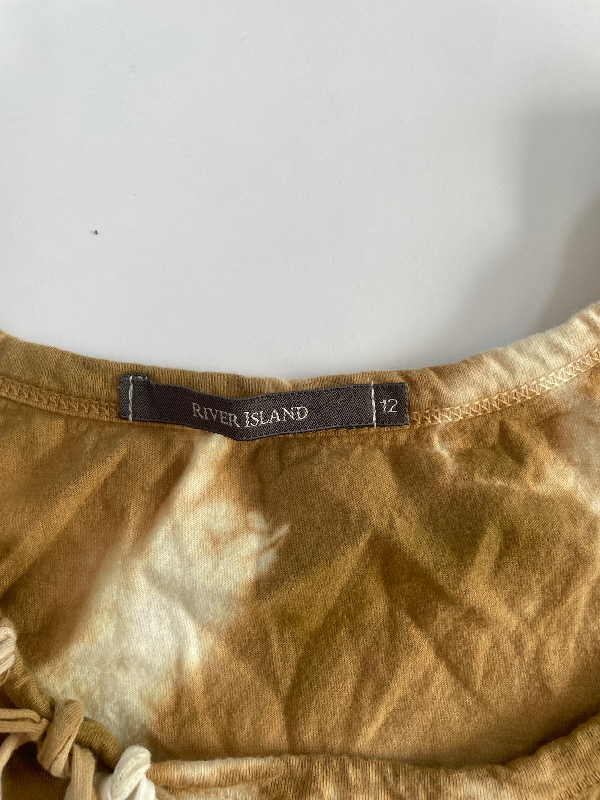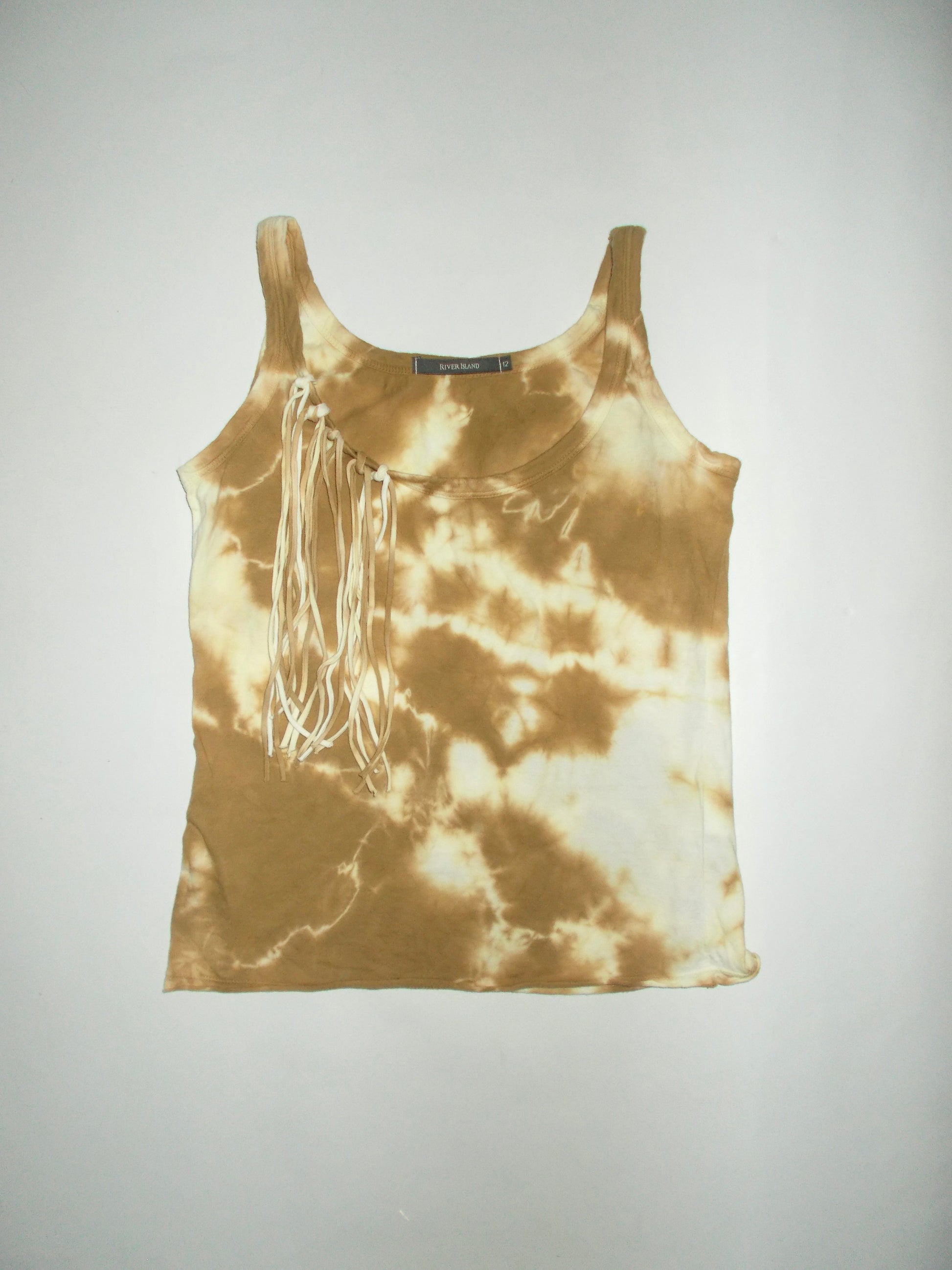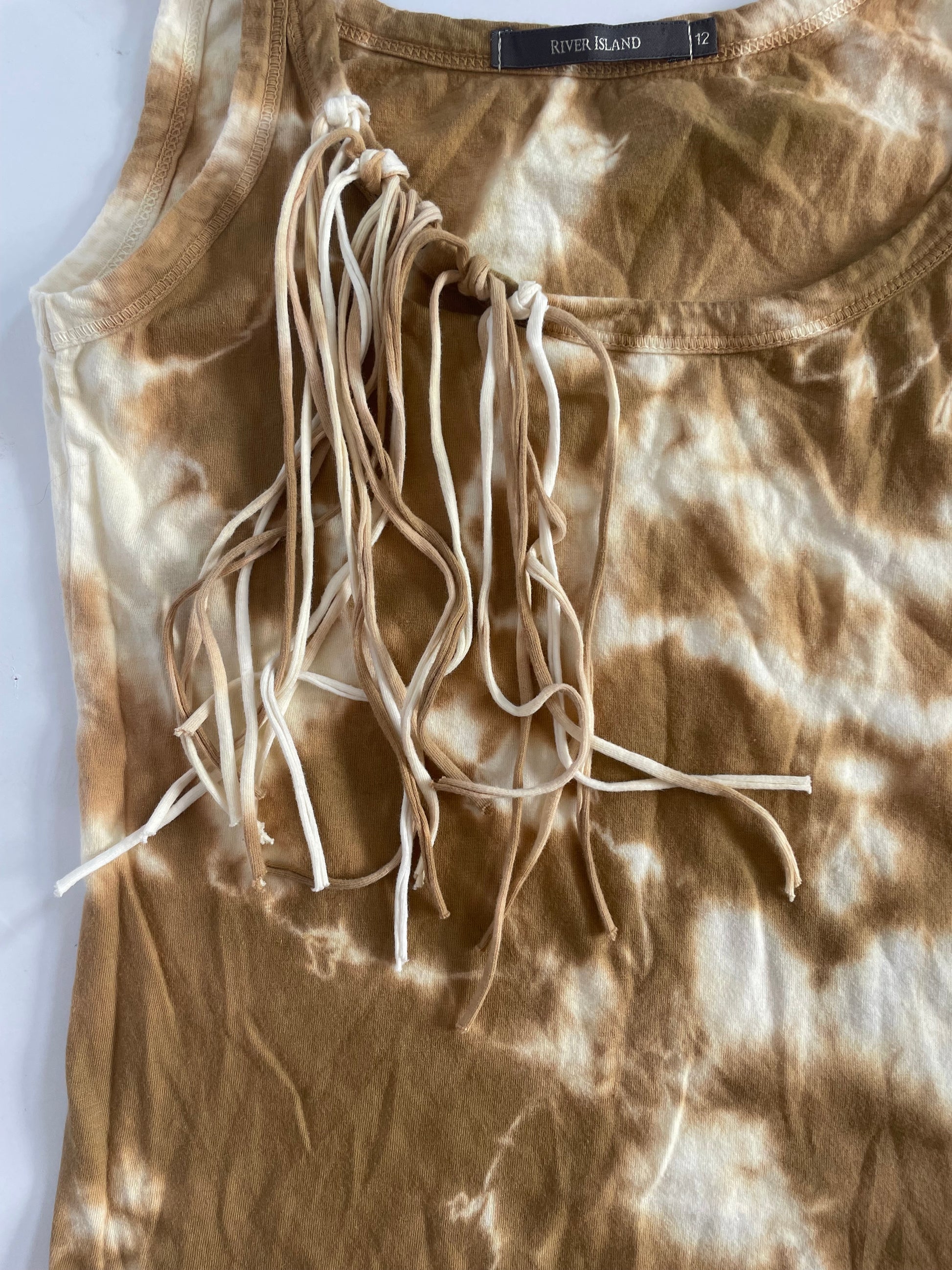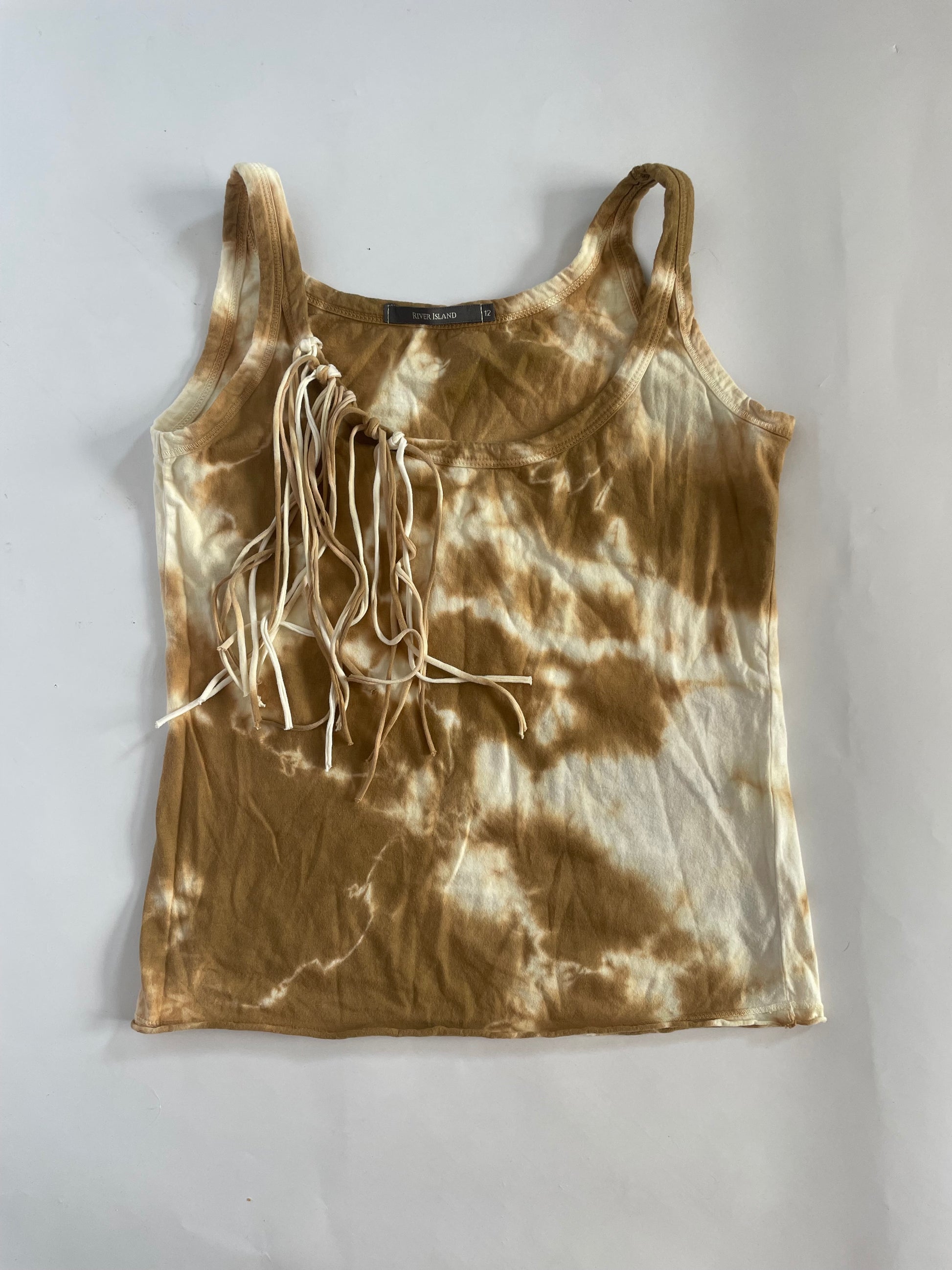 Brown tie dye fringe cami top. Grommet and fringe details. Size uk12 but more of a size 10- 90’s river island