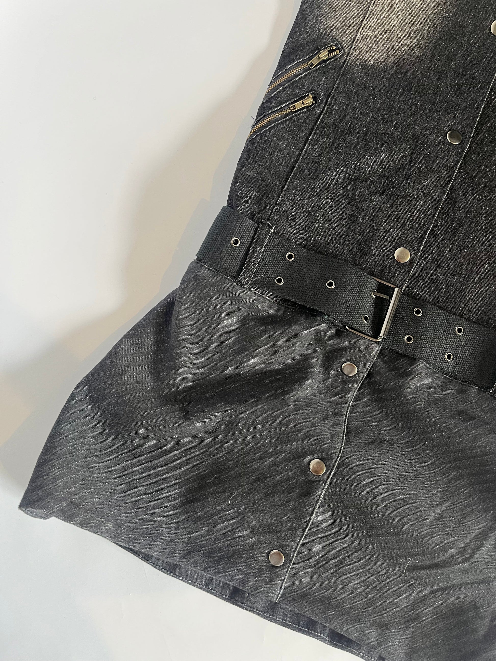 Charcoal faded denim mini dress, zip and belt details, BNWT